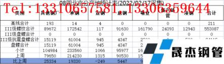節后第二周北京現貨市場成交恢復緩慢,繼續呈現持續累庫進程,在無縫厚壁無縫鋼管廠家到貨有所變化的情況下,增庫速度有明顯減慢。具體如下: