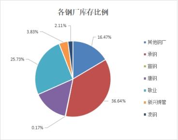 從各無縫厚壁無縫鋼管廠家比例來看,承鋼重回大哥位置,敬業次之仍有一定距離,唐鋼暫居第三,其他無縫厚壁無縫鋼管廠家緊隨其后,2672凌鋼分列五六幾乎并駕齊驅,宣鋼存量已經很小。