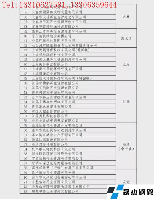 重點(diǎn)聯(lián)系再生資源回收企業(yè)名單: