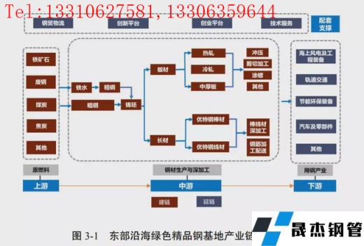 在鹽城市鋼鐵工業高質量發展的最新規劃中,頻繁出現“延伸產業鏈”等類似的字眼,以鹽城市對沿海綠色精品鋼基地產業布局中可以看出,對于產業鏈布局上是這樣規劃的:以鐵礦石、廢鋼、煤炭、焦炭等為原燃料,打造以“高爐—轉爐—連鑄—軋鋼”長流程為主、“氫基豎爐—電弧爐—連鑄—軋鋼”短流程為輔的鋼鐵生產流程,構建厚壁管生產—深加工—用鋼及相關服務協同發展的產業鏈條,實現集聚發展。厚壁管產品定位板材和長材相結合,包括熱軋、冷軋、 中厚板,優質、優特鋼棒線材等。深加工方面,一是針對板材產品配套剪切加工、涂鍍和沖壓等深加工產線,實現產品附加值提升;二是針對長材產品配套棒線材深加工和鋼筋加工配送等,實現產業鏈延伸和定制化、差異化發展。