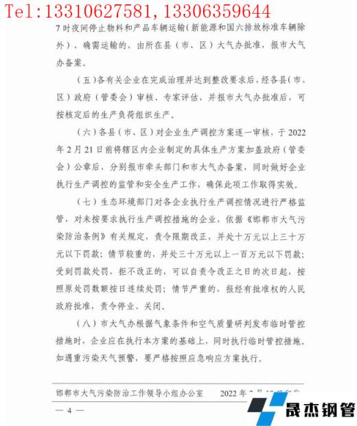 免責聲明:本網站(山東聊城晟杰無縫鋼管廠www.qiazhuo.cn)刊載的“限產50%!河北一地再發鋼企限產令!即日起至月底!”等均源于網絡,版權歸原作者所有,且僅代表原作者觀點,本文所載信息僅供參考。轉載僅為學習與交流之目的,如無意中侵犯您的合法權益,請及時聯系刪除。本網站刊登此篇文章并不意味著本站贊同其觀點或證實其內容的真實性,我們不對其科學性、嚴肅性等作任何形式的保證。如果侵犯了您的版權,請盡快聯系我們予以撤銷,謝謝合作!