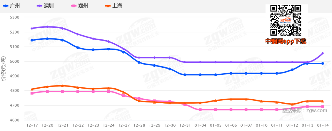 截至1月14日,全國237家流通商周均成交量11.92萬噸,周均成交量環(huán)比減少2.84萬噸,減幅為19.24%。據(jù)不完全統(tǒng)計(jì),40家電弧爐獨(dú)立建筑鋼材生產(chǎn)的鋼廠中,已有25家停產(chǎn),占62.5%。其中,1月1日前停產(chǎn)的鋼廠占24%,而1月1日至1月10日停產(chǎn)的鋼廠占60%,處于鋼廠集中停產(chǎn)階段。根據(jù)市場收集的信息來看,獨(dú)立電弧爐建筑鋼材鋼廠平均成本4817元/噸,周環(huán)比上升93元/噸。當(dāng)前電弧爐鋼廠虧損嚴(yán)重,尤其是飽和生產(chǎn)的情況下,噸鋼虧損超百元。