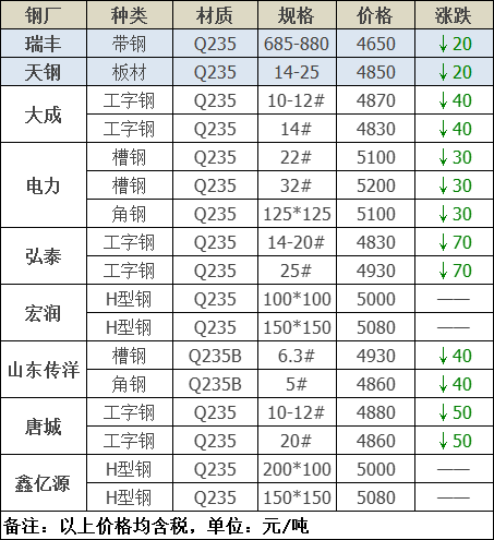 下調(diào)7家,占比77.8%,調(diào)價幅度20-70元/噸;