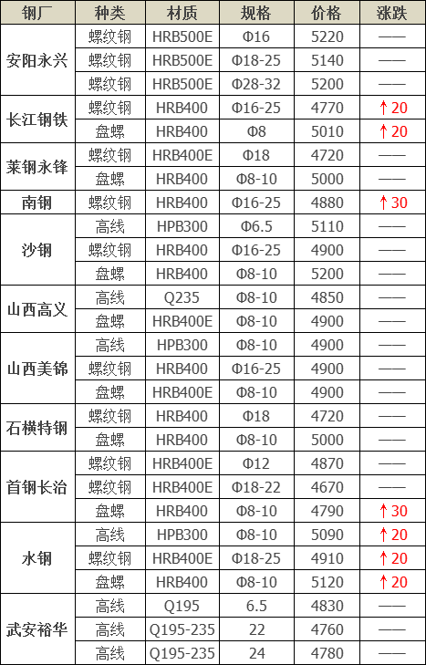 鋼廠調價今日建材共11家鋼廠調價發布,其中: