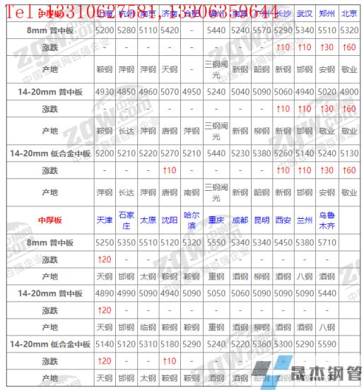 全國23個主要市場14-20mm 普中板平均價格5038元/噸,較上個交易日上調7元/噸。