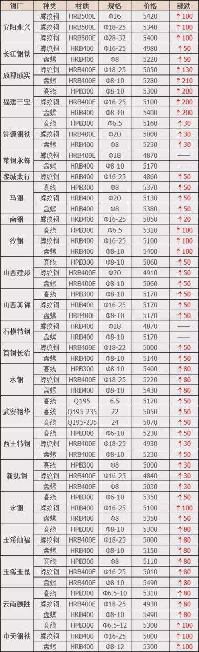2月11日廣西梧州永達漲30:冷熱板碎料3220工業純碎料3190鋼筋壓3250一級純壓3230二級壓塊3190三級壓塊3110剪料雜壓塊2910高碳鋼3300重型廢鋼3250一級剪料3220二級剪料3110三級剪料3050破碎料比重1.5的按2870,不含稅,單位:元/噸。