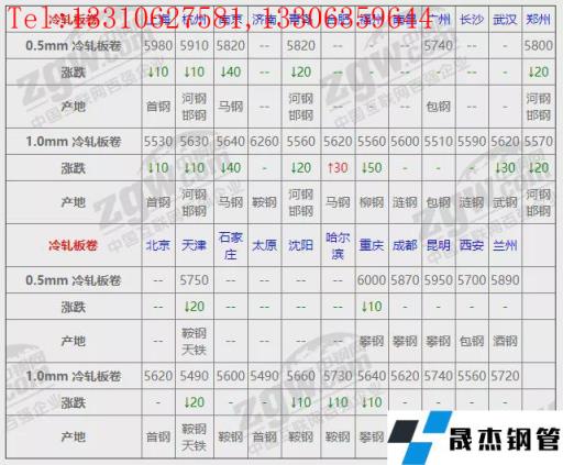 全國23個主要市場1.0mm 冷軋板卷平均價格5633元/噸,較上個交易日下調10元/噸。