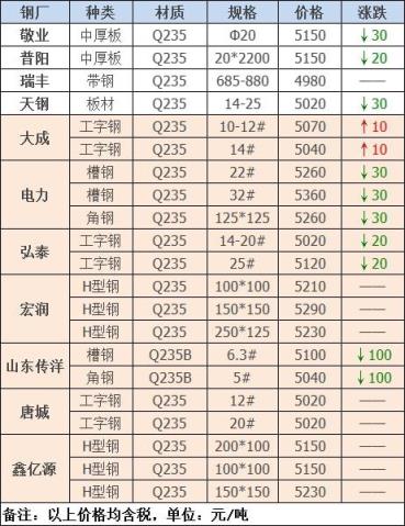 下調(diào)6家,占比54.5%,調(diào)價幅度20-100元/噸;