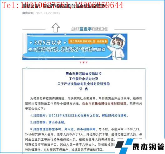 免責聲明:本網(wǎng)站(山東聊城晟杰無縫鋼管廠www.qiazhuo.cn)刊載的“突發(fā)!唐山全域性封控,鋼市影響升級”等均源于網(wǎng)絡(luò),版權(quán)歸原作者所有,且僅代表原作者觀點,本文所載信息僅供參考。轉(zhuǎn)載僅為學習與交流之目的,如無意中侵犯您的合法權(quán)益,請及時聯(lián)系刪除。本網(wǎng)站刊登此篇文章并不意味著本站贊同其觀點或證實其內(nèi)容的真實性,我們不對其科學性、嚴肅性等作任何形式的保證。如果侵犯了您的版權(quán),請盡快聯(lián)系我們予以撤銷,謝謝合作!