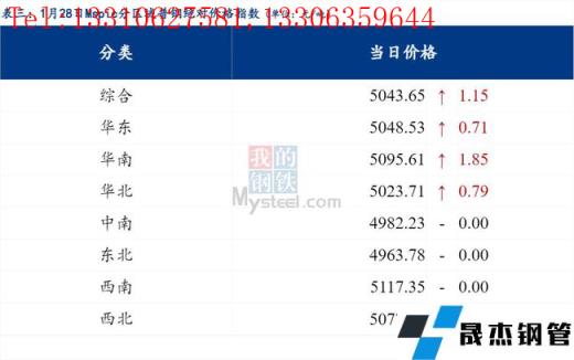 1月28日普鋼絕對價(jià)格指數(shù)變化:綜合指數(shù)5043.65,上漲1.15;螺紋鋼指數(shù)4822.08,持平0.0;線材指數(shù)5154.47,持平0.0;熱軋板卷指數(shù)4902.32,上漲1.19;冷軋板卷指數(shù)5399.03,持平0.0;中厚板指數(shù)5042.38,上漲0.13。