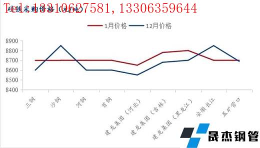 元月首周,河鋼集團首輪詢盤以8100元/噸的價格展開,但此價格尚未達到市場預期,供應商挺價情緒較濃;最終敲定招標價格8200元/噸。隨河鋼集團定價,1月鋼招也基本定型,各無縫厚壁鋼管廠家均圍繞此價格進行招標采購,南方以略偏高于北方100元/噸的價格為主,河北部分無縫厚壁鋼管廠家則仍以低于河鋼集團50-100元/噸的價格展開;臨近月中,受期貨上升影響,部分無縫厚壁鋼管廠家招標價格有200元/噸左右提漲。1月下旬,節前物流逐步停運,市場逐漸步入休市狀態,部分無縫厚壁鋼管廠家反饋節前采購難度增大,采購計劃將會延至節后進行。