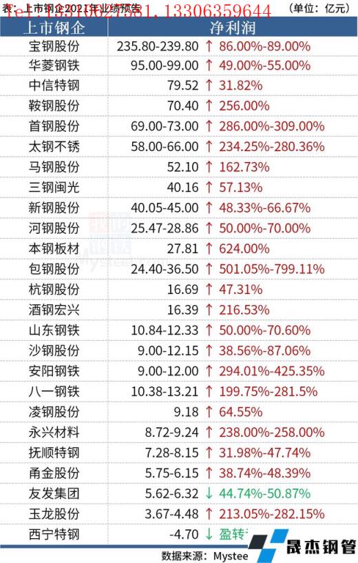 免責聲明:本網站(山東聊城晟杰無縫鋼管廠www.qiazhuo.cn)刊載的“24家上市鋼企業績飄紅,9家實現凈利潤翻倍增長”等均源于網絡,版權歸原作者所有,且僅代表原作者觀點,本文所載信息僅供參考。轉載僅為學習與交流之目的,如無意中侵犯您的合法權益,請及時聯系刪除。本網站刊登此篇文章并不意味著本站贊同其觀點或證實其內容的真實性,我們不對其科學性、嚴肅性等作任何形式的保證。如果侵犯了您的版權,請盡快聯系我們予以撤銷,謝謝合作!