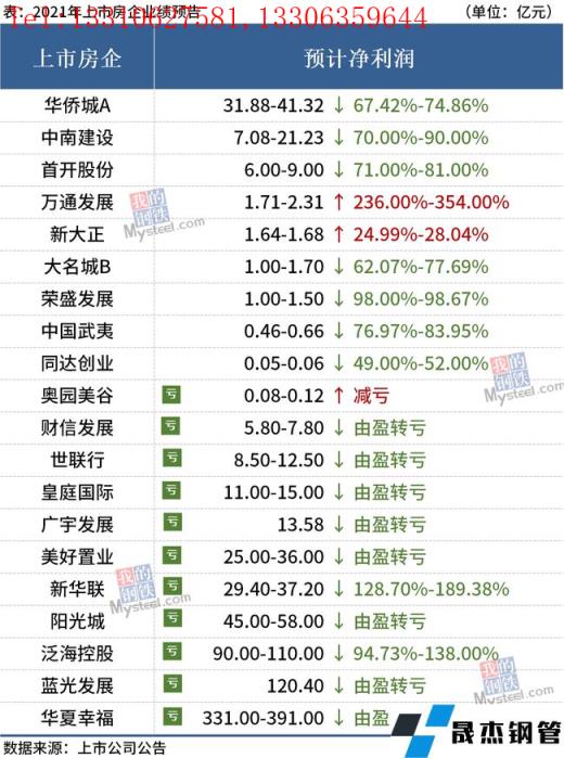 免責聲明:本網站(山東聊城晟杰無縫鋼管廠www.qiazhuo.cn)刊載的“20家房企發布2021年業績預告,過半出現虧損”等均源于網絡,版權歸原作者所有,且僅代表原作者觀點,本文所載信息僅供參考。轉載僅為學習與交流之目的,如無意中侵犯您的合法權益,請及時聯系刪除。本網站刊登此篇文章并不意味著本站贊同其觀點或證實其內容的真實性,我們不對其科學性、嚴肅性等作任何形式的保證。如果侵犯了您的版權,請盡快聯系我們予以撤銷,謝謝合作!