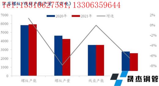 據(jù)調(diào)研,2021年江蘇省螺紋產(chǎn)能5804萬噸,增加1%。盤線產(chǎn)能3550萬噸,保持不變。螺紋產(chǎn)量4159.88萬噸,同比下降8%,盤線產(chǎn)量2612.8萬噸,同比下降6%。