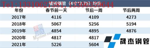 免責聲明:本網站(山東聊城晟杰無縫鋼管廠www.qiazhuo.cn)刊載的“近5年春節前后鋼材_無縫鋼管市場走勢”等均源于網絡,版權歸原作者所有,且僅代表原作者觀點,本文所載信息僅供參考。轉載僅為學習與交流之目的,如無意中侵犯您的合法權益,請及時聯系刪除。本網站刊登此篇文章并不意味著本站贊同其觀點或證實其內容的真實性,我們不對其科學性、嚴肅性等作任何形式的保證。如果侵犯了您的版權,請盡快聯系我們予以撤銷,謝謝合作!