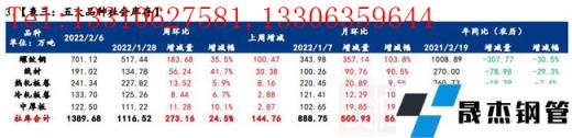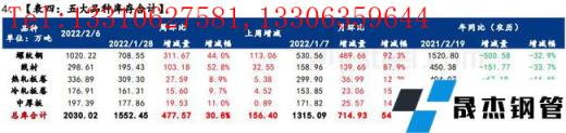 庫存方面,五大品種厚壁無縫鋼管總庫存連續(xù)五周累增,環(huán)比節(jié)前增加477.57萬噸,增幅30.8%;其中建材庫存增加414.85萬噸,增幅為45.9%;板材庫存增加62.72萬噸,增幅9.7%。