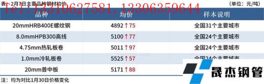 ◎截至2月6日,厚壁無縫鋼管總庫存量2030.02萬噸,較1月27日增加477.57萬噸,或增長(zhǎng)30.8%。其中,無縫厚壁鋼管廠家?guī)齑媪?40.34萬噸,增加204.41萬噸;社會(huì)庫存量1389.68萬噸,增加273.16萬噸 。詳情>>