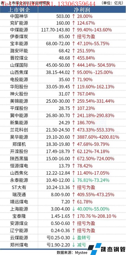 免責聲明:本網站(山東聊城晟杰無縫鋼管廠www.qiazhuo.cn)刊載的“29家上市煤企業績飄紅,15家實現凈利潤翻倍增長”等均源于網絡,版權歸原作者所有,且僅代表原作者觀點,本文所載信息僅供參考。轉載僅為學習與交流之目的,如無意中侵犯您的合法權益,請及時聯系刪除。本網站刊登此篇文章并不意味著本站贊同其觀點或證實其內容的真實性,我們不對其科學性、嚴肅性等作任何形式的保證。如果侵犯了您的版權,請盡快聯系我們予以撤銷,謝謝合作!