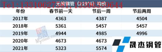 免責聲明:本網站(山東聊城晟杰無縫鋼管廠www.qiazhuo.cn)刊載的“近5年春節前后全國鋼材_無縫鋼管市場走勢”等均源于網絡,版權歸原作者所有,且僅代表原作者觀點,本文所載信息僅供參考。轉載僅為學習與交流之目的,如無意中侵犯您的合法權益,請及時聯系刪除。本網站刊登此篇文章并不意味著本站贊同其觀點或證實其內容的真實性,我們不對其科學性、嚴肅性等作任何形式的保證。如果侵犯了您的版權,請盡快聯系我們予以撤銷,謝謝合作!