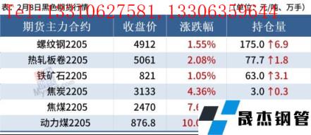 2月8日,國內(nèi)厚壁無縫鋼管市場價(jià)格繼續(xù)上漲,唐山普方坯出廠價(jià)上漲70報(bào)4670元/噸。今日黑色期貨強(qiáng)勢上漲,節(jié)后第二日現(xiàn)貨市場還未完全恢復(fù),市場成交有限。