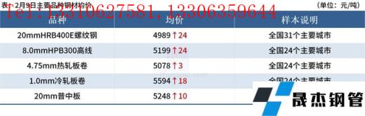 ◎本周唐山地區主流樣本無縫厚壁鋼管廠家平均鐵水不含稅成本為3285元/噸,平均鋼坯含稅成本4325元/噸,較2月7日上調5元/噸,與2月9日當前普方坯出廠價格4670元/噸相比,無縫厚壁鋼管廠家平均毛利潤345元/噸,較2月7日上調95元/噸。