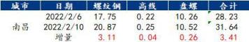 今年春節節前JJPG檢修,使得南昌建筑厚壁無縫鋼管市場春節前庫存非常低,而二月中旬FDTG有計劃進行檢修,對盤螺產量影響較大,由此可預計南昌建材庫存累庫速度將慢于往年。
