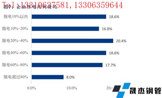 4、對于限電方面的調研結果顯示,22.0%的樣本企業明確表示目前存在限電的情況,限電的比例較為平均,35.4%的樣本企業限電比例在20%以內,38.9%的樣本企業限電比例在20%-60%,25.7%的樣本企業限電比例在60%以上。