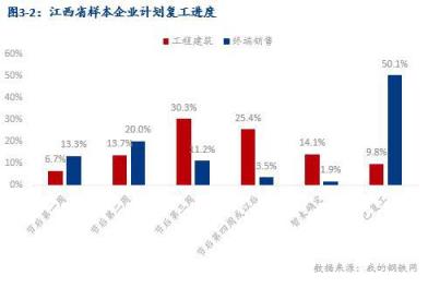 從樣本企業(yè)復(fù)工時(shí)間計(jì)劃來(lái)看,終端銷(xiāo)售樣本企業(yè)已復(fù)工50.1%,預(yù)計(jì)在節(jié)后第二周復(fù)工率達(dá)到83.4%;工程建筑企業(yè)復(fù)工時(shí)間相對(duì)較晚,僅9.8%企業(yè)已經(jīng)復(fù)工,69.4%主要集中在節(jié)后第二周以后復(fù)工。