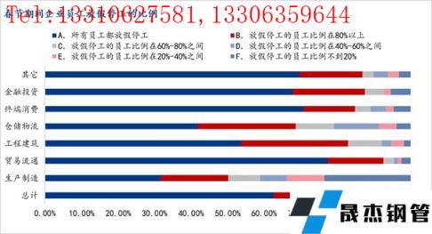分類型來看,今年生產制造業的員工放假停工占比依舊最低的,貿易流通、終端消費企業中所有員工都停工的情況占比分別到達77.39%、70.77%,居行業第一、第二,而工程建筑類企業所有員工都放假停工的比例則降低至53.71%。