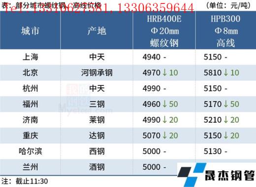 ◎濟南:14日早盤建材市場價格跌20。萊鋼螺紋4920,永鋒、石橫螺紋4910,永鋒、石橫盤螺5210。(單位:元/噸)