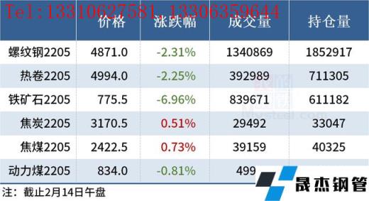 免責聲明:本網站(山東聊城晟杰無縫鋼管廠www.qiazhuo.cn)刊載的“2022年02月14日午報:鋼價多數下跌,鐵礦石期貨跌逾6%”等均源于網絡,版權歸原作者所有,且僅代表原作者觀點,本文所載信息僅供參考。轉載僅為學習與交流之目的,如無意中侵犯您的合法權益,請及時聯系刪除。本網站刊登此篇文章并不意味著本站贊同其觀點或證實其內容的真實性,我們不對其科學性、嚴肅性等作任何形式的保證。如果侵犯了您的版權,請盡快聯系我們予以撤銷,謝謝合作!