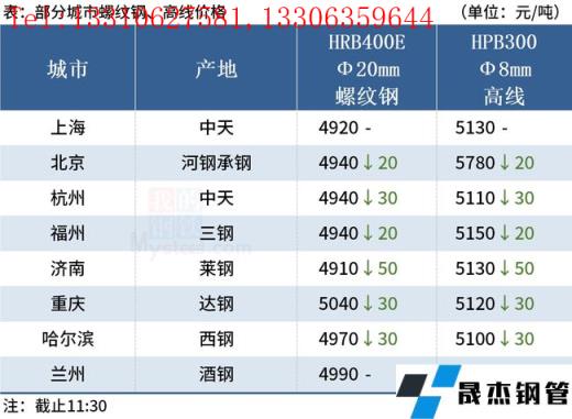 ◎北京:15日早盤建材市場(chǎng)價(jià)格跌20,河鋼小螺紋5060-5080,大螺紋4920-4940,盤螺5100。(單位:元/噸)