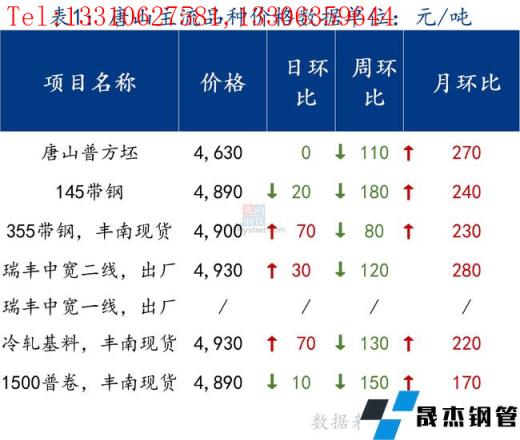 今日唐山管帶價格漲跌互現,其中355帶鋼價格較上一交易日漲70元/噸,145帶鋼較上一交易日跌20元/噸,管材價格暫且持穩。市場成交增量。