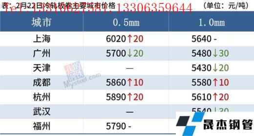 冷軋板卷:2月22日,全國(guó)24個(gè)主要城市1.0mm冷卷均價(jià)5580元/噸,較上個(gè)交易日上漲4元/噸。今日黑色期貨呈現(xiàn)高開(kāi)低走的態(tài)勢(shì),并且午后期貨盤(pán)面大幅跳水,現(xiàn)貨市場(chǎng)較為冷清,詢(xún)單人數(shù)明顯減少。無(wú)縫厚壁鋼管廠家方面,進(jìn)入2月下旬,各大無(wú)縫厚壁鋼管廠家結(jié)算陸續(xù)公布,據(jù)了解,AG對(duì)上海地區(qū)冷軋結(jié)算價(jià)到庫(kù)5470元/噸,BG對(duì)上海地區(qū)冷軋結(jié)算價(jià)到庫(kù)5450元/噸,稍有盈利空間。下游方面,下游終端企業(yè)以謹(jǐn)慎觀望為主,再加上現(xiàn)處于銷(xiāo)售淡季,需求持續(xù)疲軟。綜合來(lái)看,故預(yù)計(jì)23日國(guó)內(nèi)冷軋板卷價(jià)格或?qū)⒄鹗幤踹\(yùn)行。