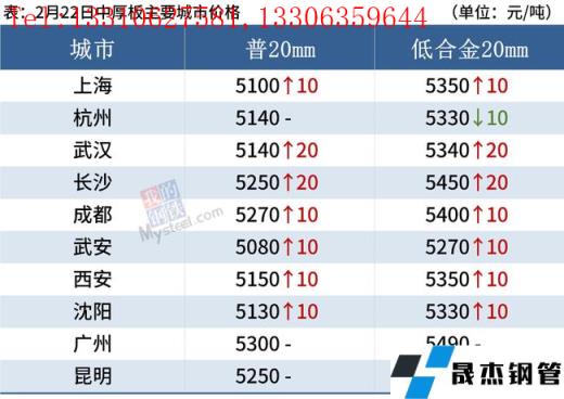 中厚板:2月22日,全國(guó)24個(gè)主要城市20mm普板均價(jià)5198元/噸,較上個(gè)交易日上漲8元/噸。今日部分無(wú)縫厚壁鋼管廠家出廠鎖單價(jià)進(jìn)行調(diào)整,幅度在-20~40之間,收單情況整體偏差。據(jù)對(duì)各地商戶(hù)的簡(jiǎn)單調(diào)研,目前需求較去年同期普遍偏差,成交方面不理想。綜合來(lái)看,預(yù)期23日國(guó)內(nèi)中板價(jià)格震蕩偏弱運(yùn)行。