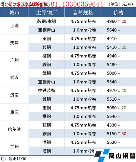 ◎樂從:23日早盤熱卷市場價格暫穩,4.75以上普柳燕4940-4950,2.75普5010-5160錳5120-5140。(單位:元/噸)