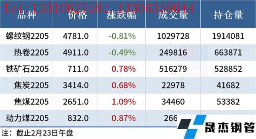 免責聲明:本網站(山東聊城晟杰無縫鋼管廠www.qiazhuo.cn)刊載的“2022年02月23日午報:鋼價多數下跌,黑色期貨低開高走”等均源于網絡,版權歸原作者所有,且僅代表原作者觀點,本文所載信息僅供參考。轉載僅為學習與交流之目的,如無意中侵犯您的合法權益,請及時聯系刪除。本網站刊登此篇文章并不意味著本站贊同其觀點或證實其內容的真實性,我們不對其科學性、嚴肅性等作任何形式的保證。如果侵犯了您的版權,請盡快聯系我們予以撤銷,謝謝合作!