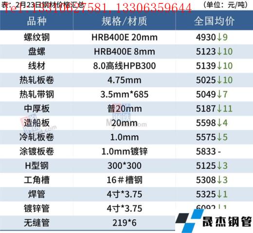 2月23日主要觀點:①、全國31個主要城市20mm三級抗震螺紋鋼均價4930元/噸,較上個交易日跌9元/噸。預計24日國內建筑厚壁無縫鋼管或將維持弱勢運行。②、全國24個主要城市4.75mm熱軋板卷均價5025元/噸,較上個交易日下跌10元/噸。預計24日熱軋板卷價格或窄幅震蕩運行。③、全國24個主要城市1.0mm冷卷均價5575元/噸,較上個交易日下跌5元/噸。預計24日全國冷軋板卷價格或將震蕩偏弱運行。④、全國24個主要城市20mm普板均價5187元/噸,較上一交易日下跌11元/噸。預計24日中厚板價格或將仍以盤整運行為主。⑤、全國45個主要市場廢鋼平均價3195元/噸,較上一交易日價格降1元/噸。預計短期廢鋼市場價格窄幅震蕩運行。⑥、山東進口鐵礦石現貨市場報價先漲后跌,整體交投情緒較為冷清,貿易商多一單一議,無縫厚壁鋼管廠家按需采購。⑦、焦炭市場暫穩偏強運行。焦炭第一輪提漲200元/噸,主流無縫厚壁鋼管廠家暫無回應。預計第一輪提漲本周有望落地,預計短期內焦炭市場暫穩偏強運行。