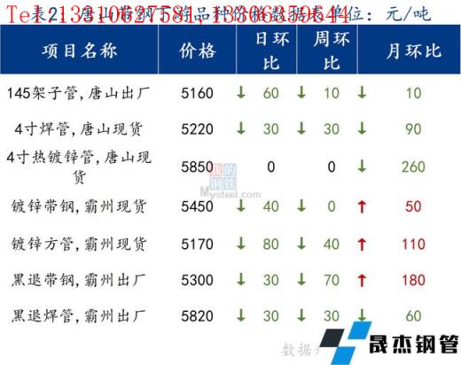今日唐山管帶價格回落,其中355帶鋼價格較上一交易日跌10元/噸,145帶鋼較上一交易日跌70元/噸,焊管價格跌30元/噸,鍍鋅管價格持穩。市場成交稍有增加,但整體仍然清淡。