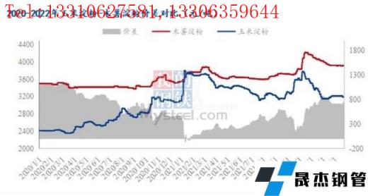 玉米淀粉與其他替代品相比仍有價格優勢:2022 年第 8 周,木薯淀粉與玉米淀粉價差小幅走擴,平均價差為 710 元/噸。受注冊食品編號影響,木薯淀粉貨源在港口等待清關放行時間較長,木薯淀粉供應有限。與木薯淀粉價格相比,前期低價玉米淀粉價格依舊具有較為明顯的性價比優勢,具備上漲基礎。
