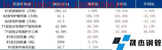 截止2月23日,調研全國71家獨立電弧爐無縫厚壁鋼管廠家,平均開工率44.36%,周環比上升28.73%,同比去年上升30.63%;產能利用率42.66%,周環比上升26.7%,同比去年上升32.61%。隨著冬奧會結束以及產能釋放,無縫厚壁鋼管廠家用廢需求增加,加上電弧爐開工率上升,廢鋼需求上行。