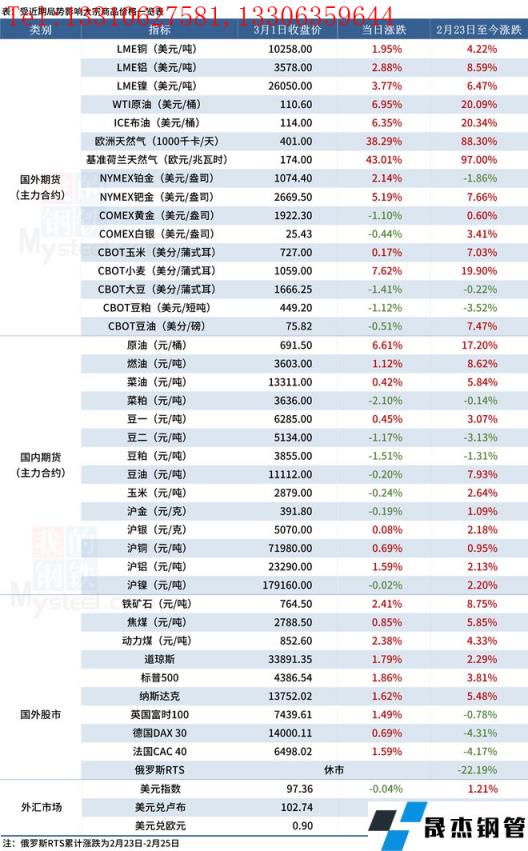免責聲明:本網站(山東聊城晟杰無縫鋼管廠www.qiazhuo.cn)刊載的“受近期局勢影響大宗商品價格一覽表(3月2日)”等均源于網絡,版權歸原作者所有,且僅代表原作者觀點,本文所載信息僅供參考。轉載僅為學習與交流之目的,如無意中侵犯您的合法權益,請及時聯系刪除。本網站刊登此篇文章并不意味著本站贊同其觀點或證實其內容的真實性,我們不對其科學性、嚴肅性等作任何形式的保證。如果侵犯了您的版權,請盡快聯系我們予以撤銷,謝謝合作!