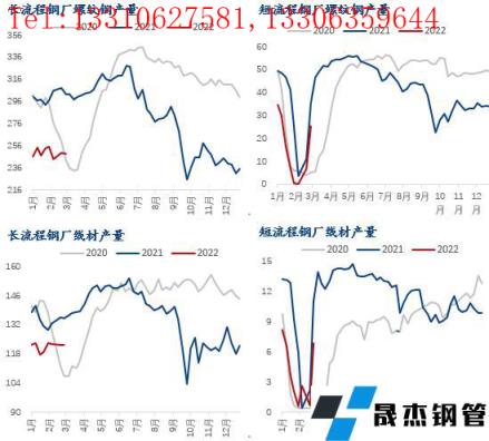 節后開市,無縫厚壁鋼管廠家建筑厚壁無縫鋼管產量有所回升,但由于利潤的緣故,速率和彈性均不及往年。以螺紋鋼為例,分區域來看,除華北區域產量月環比小幅下降外,其余地區產量月環比均出現增加,增幅均較為有限。分工藝來看,長流程無縫厚壁鋼管廠家螺紋鋼產量月環比下降,短流程無縫厚壁鋼管廠家螺紋鋼產量月環比增加。分品種來看,螺紋鋼和線材產量月環比均出現小幅增加。