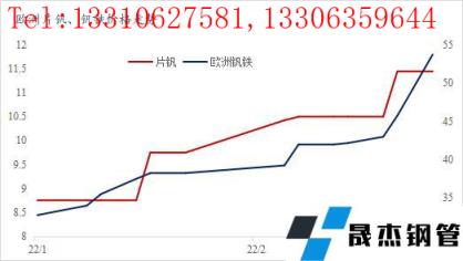 2月末俄對烏展開特別軍事行動,引發俄經濟制裁。國際市場對俄羅斯Evraz公司能否正常出口釩產品擔憂情緒加重,導致歐洲釩產品價格快速上漲,2月24日至3月2日80釩鐵由46-48美元/公斤上升至50.5-57美元/公斤,價格上漲了4.5-9美元/公斤。