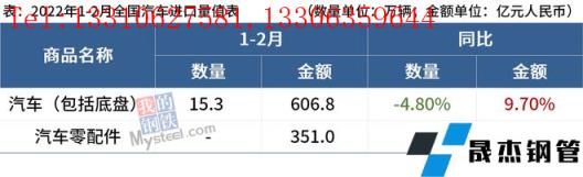 免責聲明:本網站(山東聊城晟杰無縫鋼管廠www.qiazhuo.cn)刊載的“海關總署:1-2月中國出口汽車47.7萬輛,同比增69.70%”等均源于網絡,版權歸原作者所有,且僅代表原作者觀點,本文所載信息僅供參考。轉載僅為學習與交流之目的,如無意中侵犯您的合法權益,請及時聯系刪除。本網站刊登此篇文章并不意味著本站贊同其觀點或證實其內容的真實性,我們不對其科學性、嚴肅性等作任何形式的保證。如果侵犯了您的版權,請盡快聯系我們予以撤銷,謝謝合作!