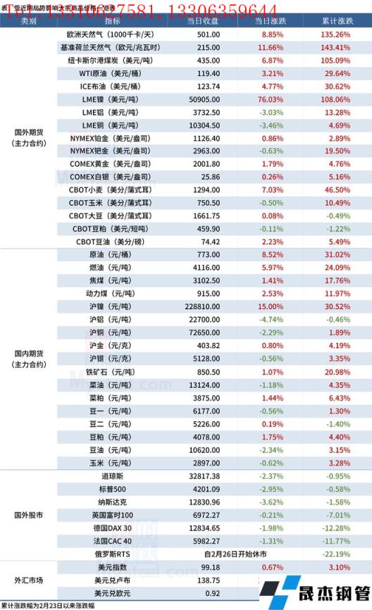免責聲明:本網站(山東聊城晟杰無縫鋼管廠www.qiazhuo.cn)刊載的“受近期局勢影響大宗商品價格一覽表(3月7日)”等均源于網絡,版權歸原作者所有,且僅代表原作者觀點,本文所載信息僅供參考。轉載僅為學習與交流之目的,如無意中侵犯您的合法權益,請及時聯系刪除。本網站刊登此篇文章并不意味著本站贊同其觀點或證實其內容的真實性,我們不對其科學性、嚴肅性等作任何形式的保證。如果侵犯了您的版權,請盡快聯系我們予以撤銷,謝謝合作!