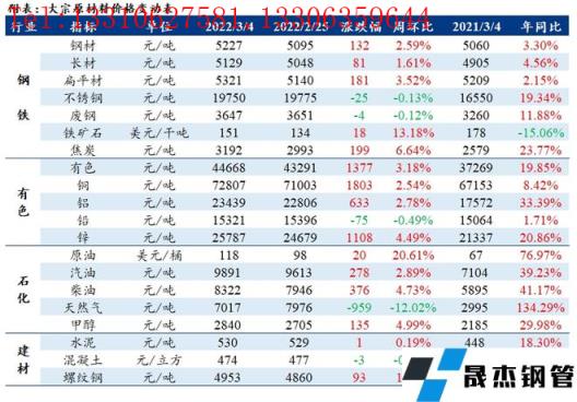 免責聲明:本網站(山東聊城晟杰無縫鋼管廠www.qiazhuo.cn)刊載的“周報:大宗原材料價格周報(2.28-3.4)”等均源于網絡,版權歸原作者所有,且僅代表原作者觀點,本文所載信息僅供參考。轉載僅為學習與交流之目的,如無意中侵犯您的合法權益,請及時聯系刪除。本網站刊登此篇文章并不意味著本站贊同其觀點或證實其內容的真實性,我們不對其科學性、嚴肅性等作任何形式的保證。如果侵犯了您的版權,請盡快聯系我們予以撤銷,謝謝合作!