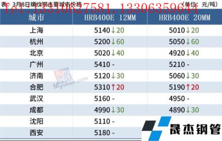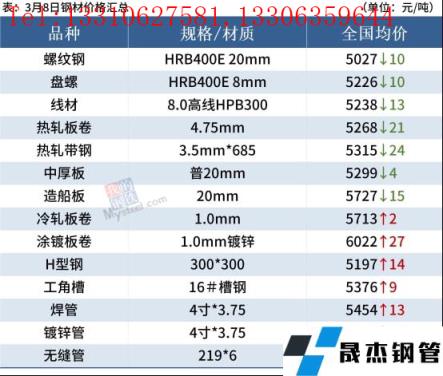 建筑厚壁無(wú)縫鋼管:3月8日,全國(guó)31個(gè)主要城市20mm三級(jí)抗震螺紋鋼均價(jià)5027元/噸,較上個(gè)交易日下跌10元/噸。具體來(lái)看,早盤期螺弱勢(shì)震蕩,上午國(guó)內(nèi)建筑厚壁無(wú)縫鋼管價(jià)格整體暫穩(wěn),個(gè)別市場(chǎng)趨弱。從成交方面來(lái)看,商家反饋今日成交表現(xiàn)整體偏弱,終端剛需為主,投機(jī)情緒退去,市場(chǎng)觀望情緒濃,盤中價(jià)格繼續(xù)下調(diào)。綜合來(lái)看,近期下游終端需求逐步復(fù)蘇,但周一價(jià)格上漲過(guò)快,市場(chǎng)有待消化,預(yù)計(jì)9日國(guó)內(nèi)建筑厚壁無(wú)縫鋼管價(jià)格將繼續(xù)弱勢(shì)震蕩運(yùn)行。
