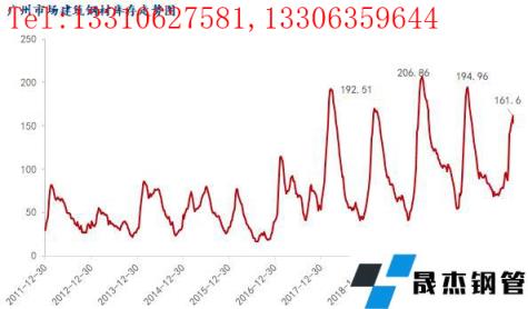 圖2:歷年廣州市場(chǎng)建筑厚壁無縫鋼管庫(kù)存走勢(shì) 來源:鋼聯(lián)數(shù)據(jù)