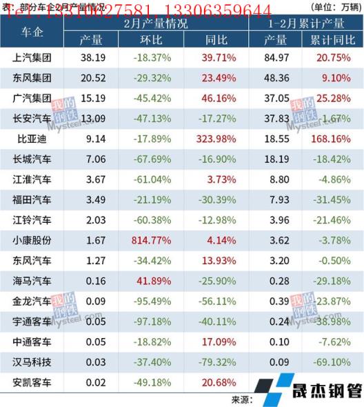 免責聲明:本網站(山東聊城晟杰無縫鋼管廠www.qiazhuo.cn)刊載的“2月上市車企產銷量出爐,排名前三位產量同比大增”等均源于網絡,版權歸原作者所有,且僅代表原作者觀點,本文所載信息僅供參考。轉載僅為學習與交流之目的,如無意中侵犯您的合法權益,請及時聯系刪除。本網站刊登此篇文章并不意味著本站贊同其觀點或證實其內容的真實性,我們不對其科學性、嚴肅性等作任何形式的保證。如果侵犯了您的版權,請盡快聯系我們予以撤銷,謝謝合作!